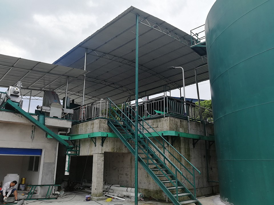 工艺流程:固液分离+收集池+气浮装置+絮凝反应沉淀+中间水池+UASB厌氧反应器+AAO池+消毒器+清水池